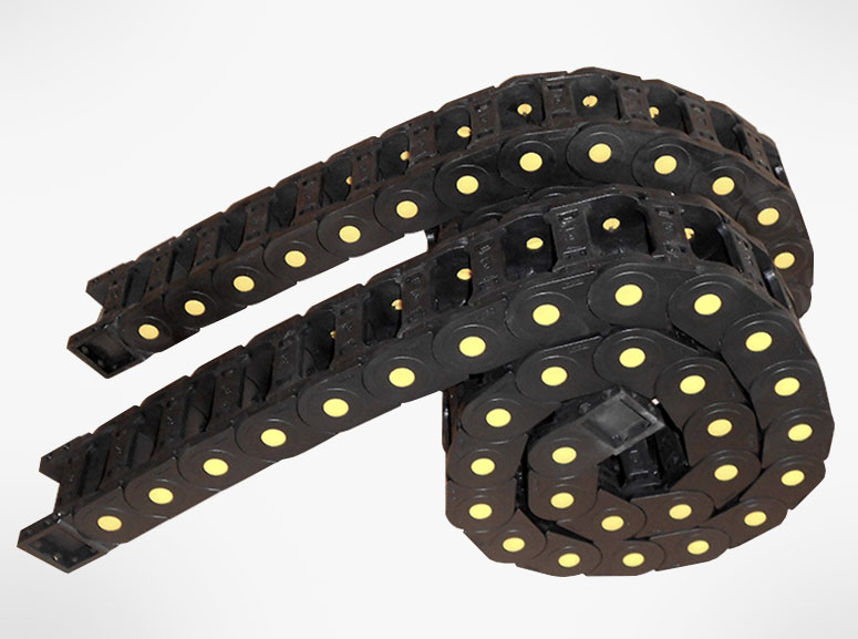 [0002]拖鏈由若干個通過連接件鉸接的鏈節(jié)組成,其適用于使用在往復(fù)運動的場合,能 夠?qū)?nèi)置的電纜、油管、氣管、水管等起到牽引和保護(hù)作用,廣泛應(yīng)用于數(shù)控機(jī)床、電子設(shè) 備、石材機(jī)械、玻璃機(jī)械、門窗機(jī)械、注塑機(jī)、機(jī)械手、起重運輸設(shè)備、自動化倉庫等。